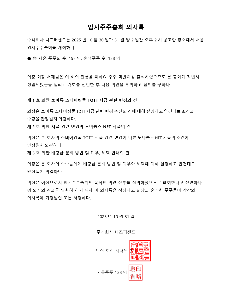2025.11.05 | 토마톡 임시주주총회 의사록 안내