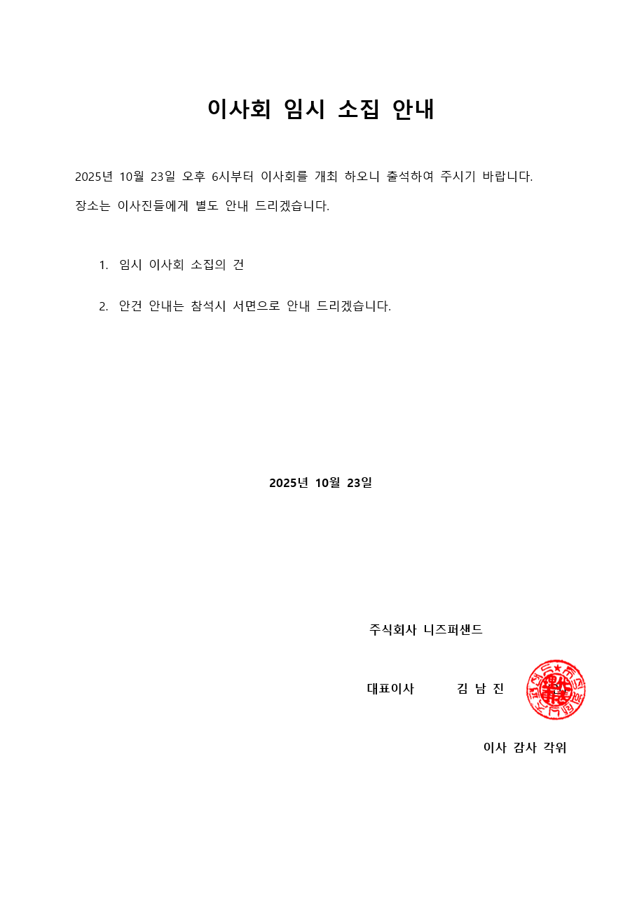 2025.10.23 | 토마톡 이사회 임시 소집 안내
